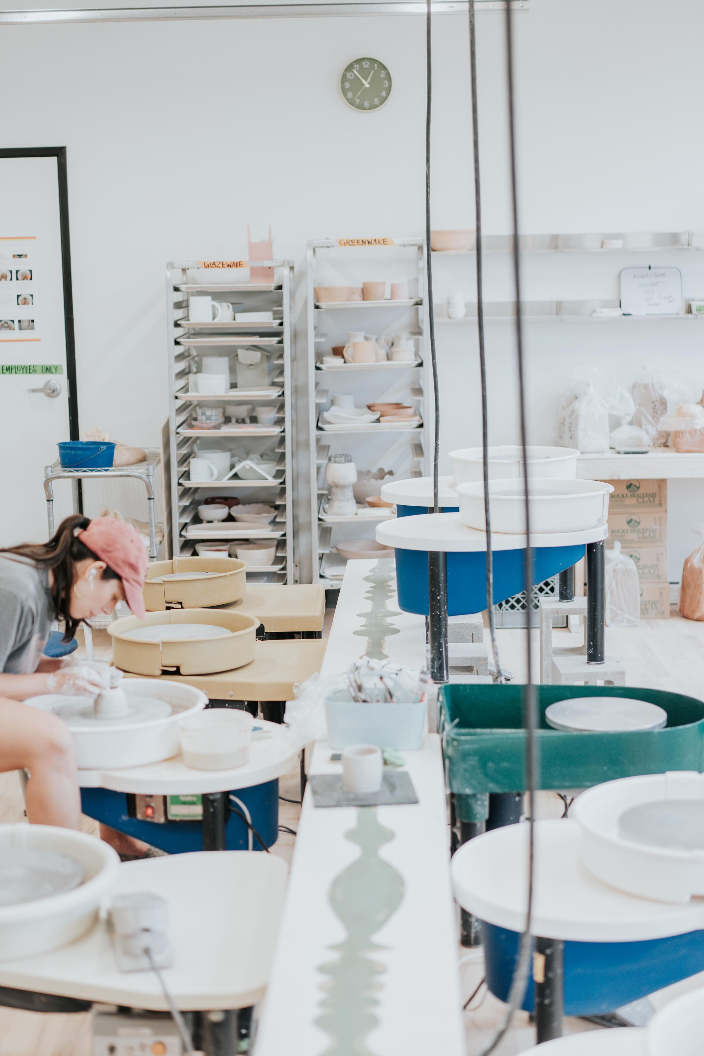 The Membership Studio at Clay Hub is a space for members to create in community. All levels are welcome. If you’ve taken pottery classes with us at Tinker (or equivalent elsewhere), and you feel comfortable working independently, we’d love to have you! Our membership is all inclusive: think clay, firing fees, and even weekly Office Hours with our fabulous instructors! If you’re more clay curious at this point, a class or workshop would be a better fit. But if you’ve got the bug, well, join the club!